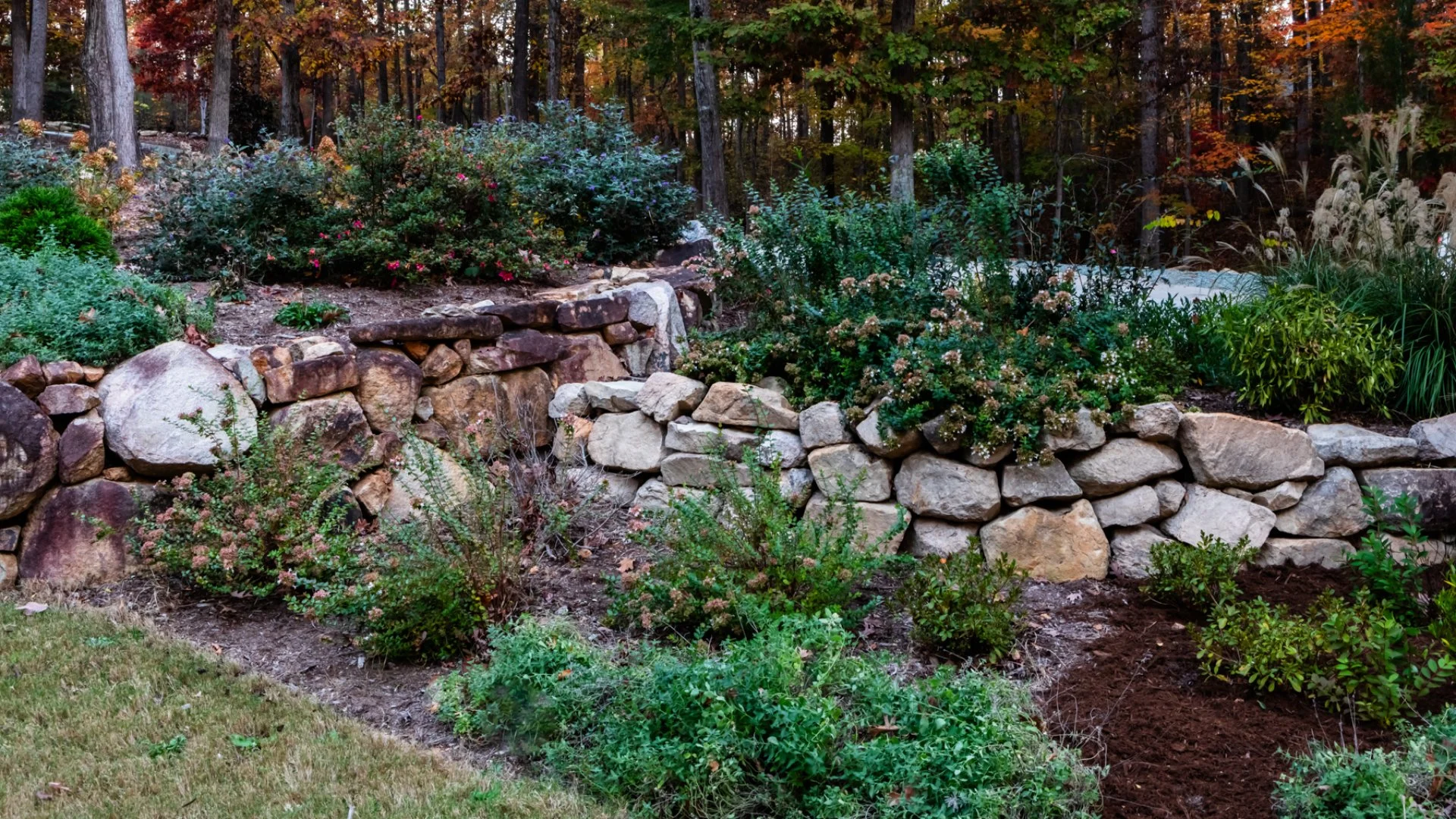 Healthy trees and shrubs in a yard in Cary, NC.